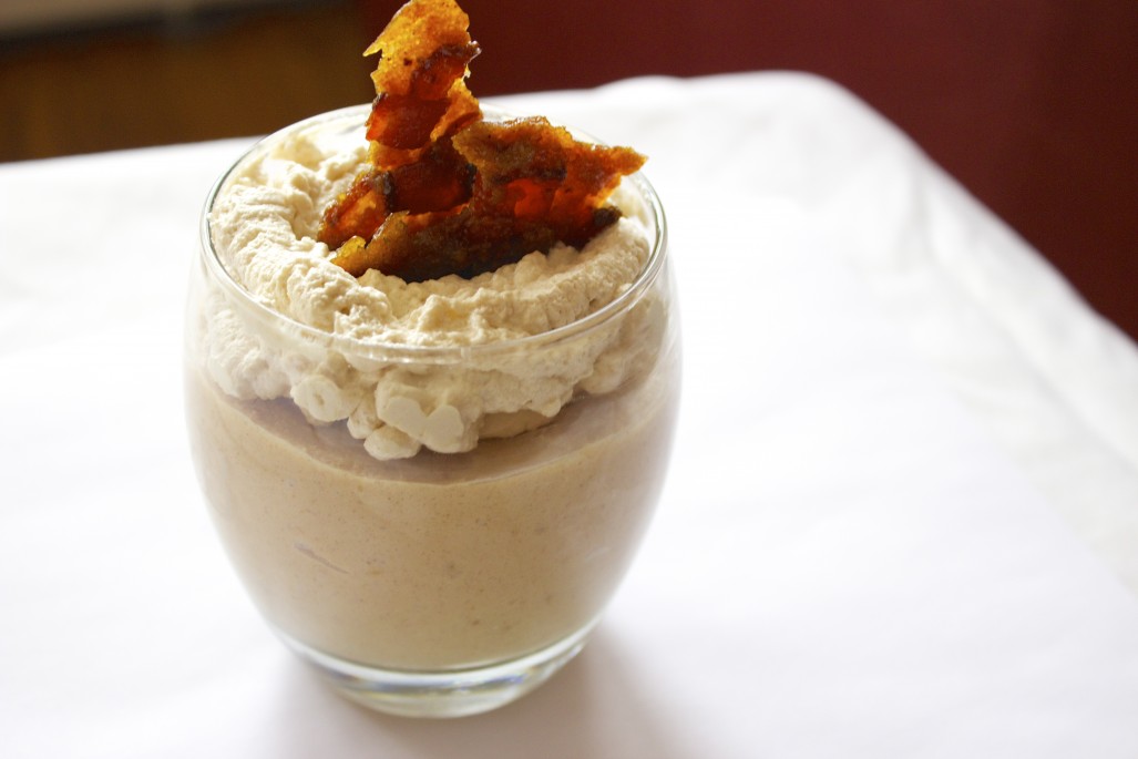 Every so often my tastebuds like to prove their sensual memory, and my mouth waters at the mere thought of peanut butter and marshmallow. I finally decided to take matters into my own hands and create something more age appropriate and diet conducive, yet still as rewarding. The natural thing to do was create a peanut butter mousse, make my own brown sugar marshmallow fluff, and top it all with some candied bacon, of course.