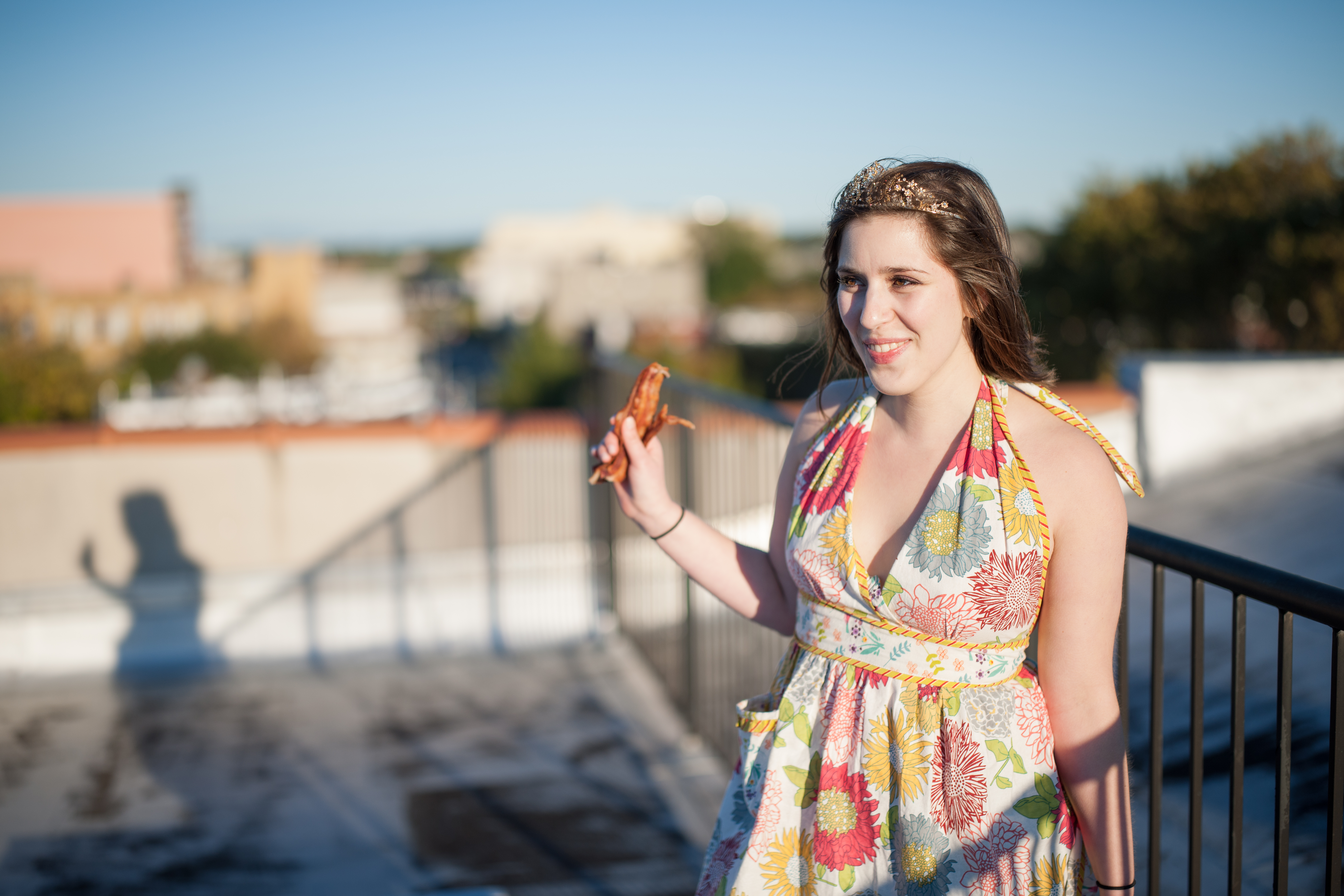 As you’re about to find out, my love for bacon knows no bounds. It’s almost like I take it with me everywhere. But in this specific case I took my love to Brooklyn where I stood on a rooftop donning nothing but my apron, tiara, and frying pan to consume copious amounts of bacon while the unfathomably talented Aaron Thomas snapped photos of me. (People, that link is there for a reason — check out this dude’s website, pronto!)