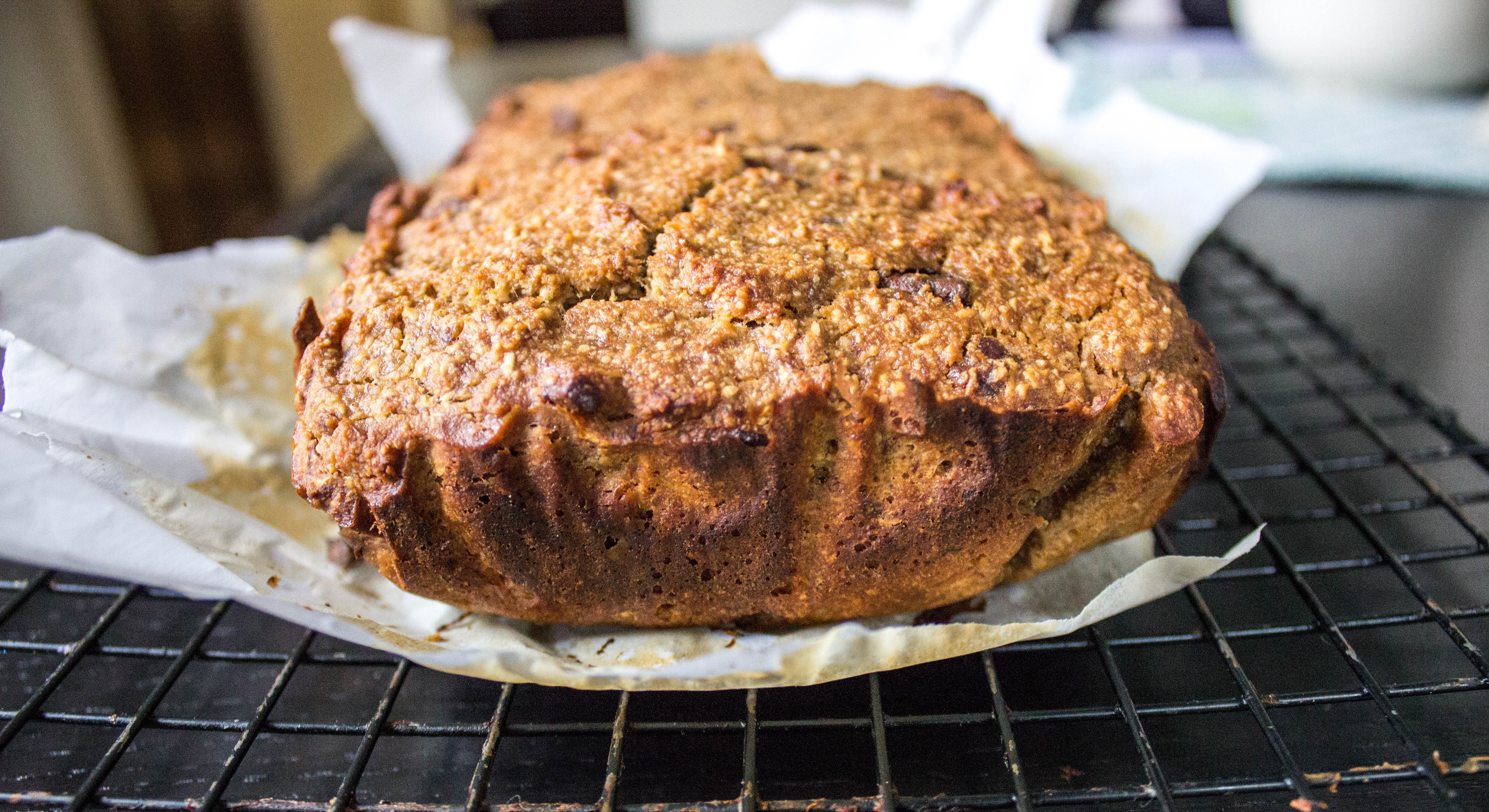 - Remove bread from pan by grabbing parchment paper. Transfer loaf to cooling rack to cool completely. Or get a fork out and dig into it immediately, burning the roof of your mouth with scalding hot melted chocolate. Your choice.