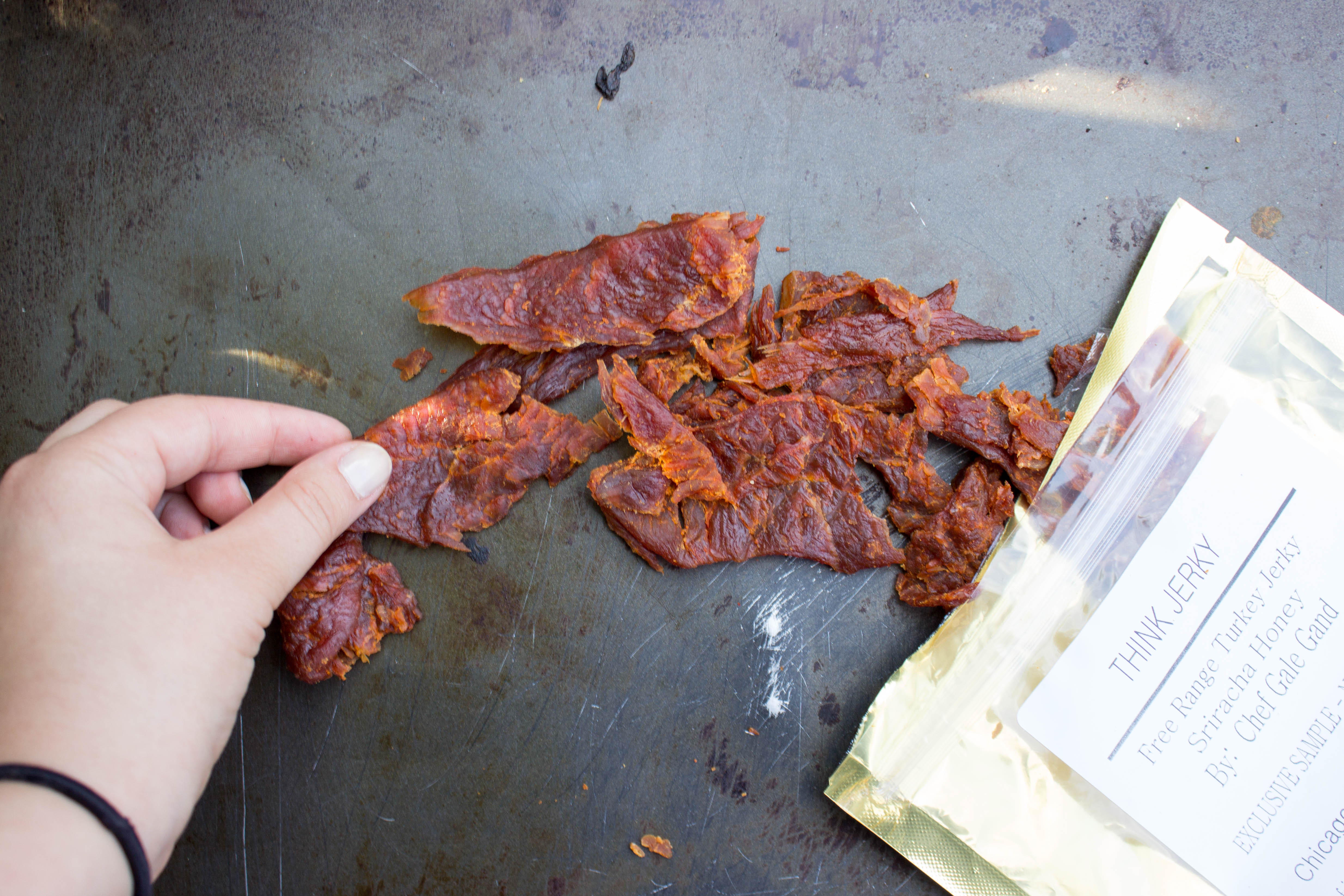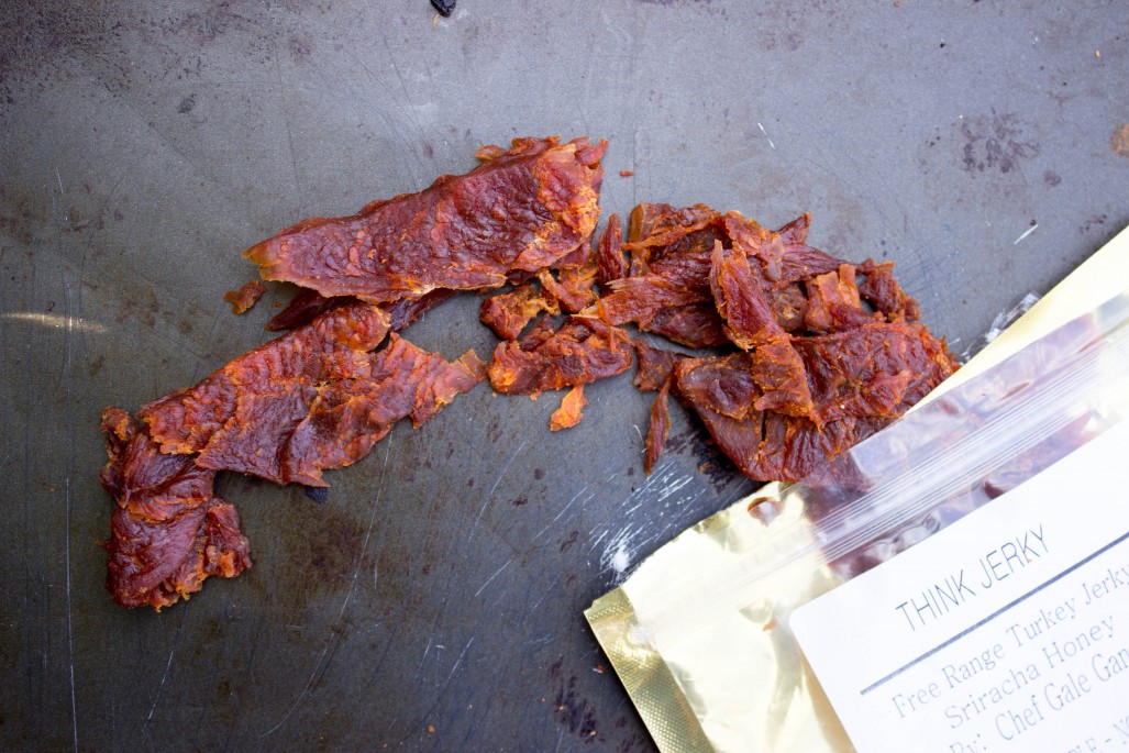 But debatably my most favorite thing about Think Jerky is you know who’s making it. For instance, my sriracha honey free-range turkey was made by Chef Gale Gand.