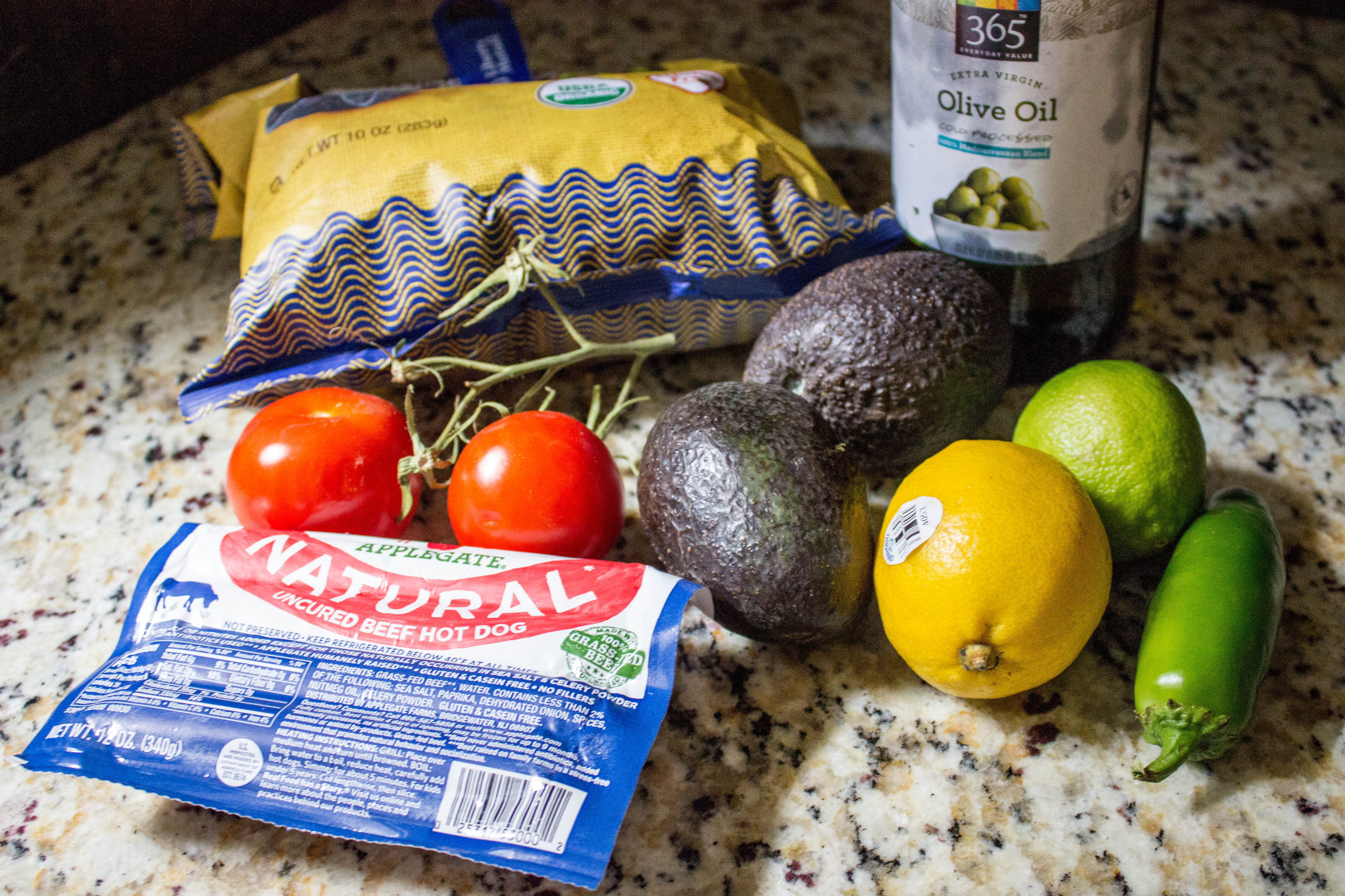 Because I’m all for combining as many pork products as possible into one dish, I present to you these bacon-wrapped Applegate hot dogs. And because I was feeling a little festive, I decided to add some guac, Garden of Eatin’ blue corn chips, and my special jalapeño-lime aioli on top. Please do yourself a favor and make these, ASAP.