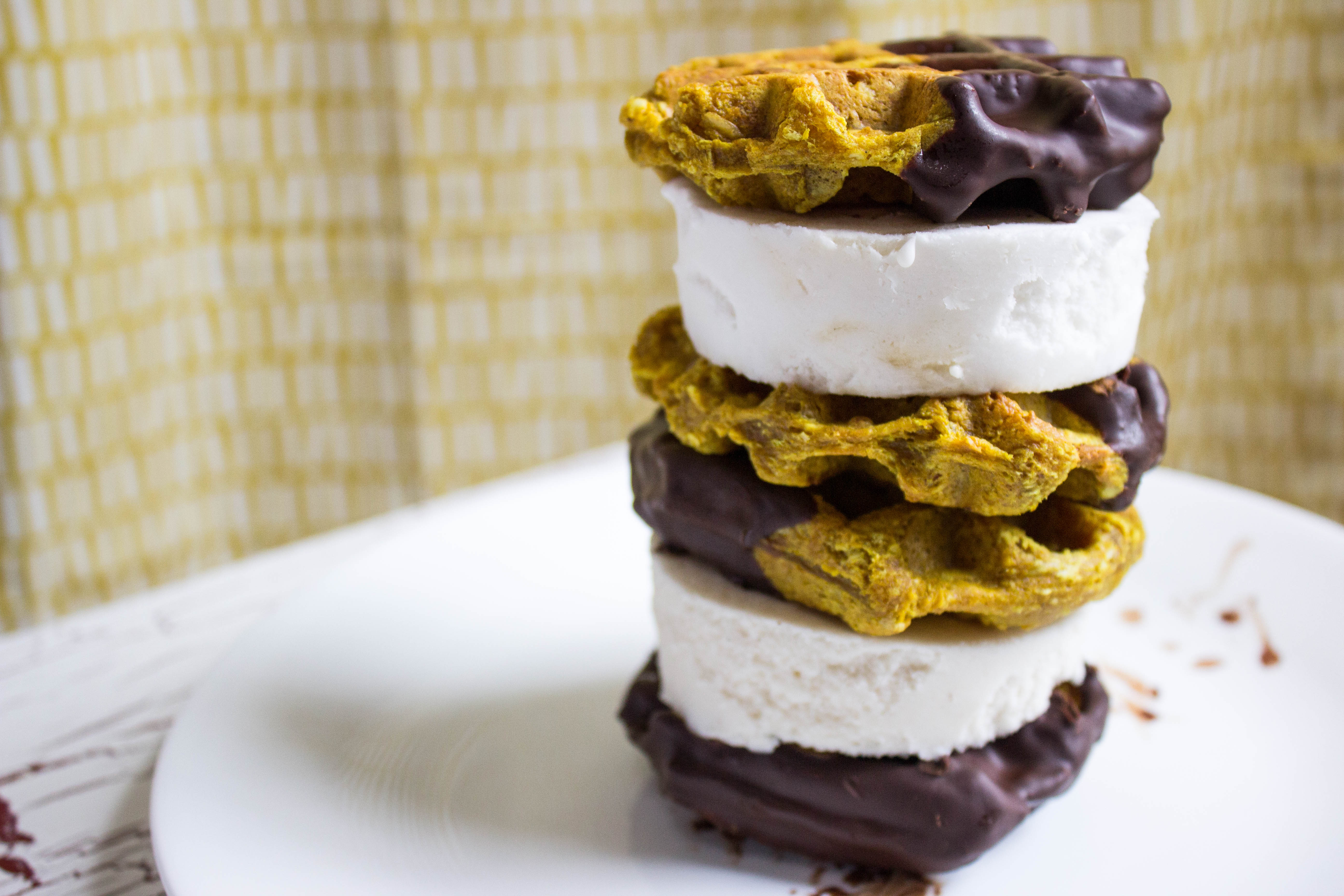 Since I love these products so much, it only made sense to combine my two favorite flavors of each – Sweet Potato Curry and Salty Dulce – together in the happiest food marriage known to man: the ice cream sandwich. I know this flavor combo sounds a little quirky, but don’t knock it ’til ya try it.