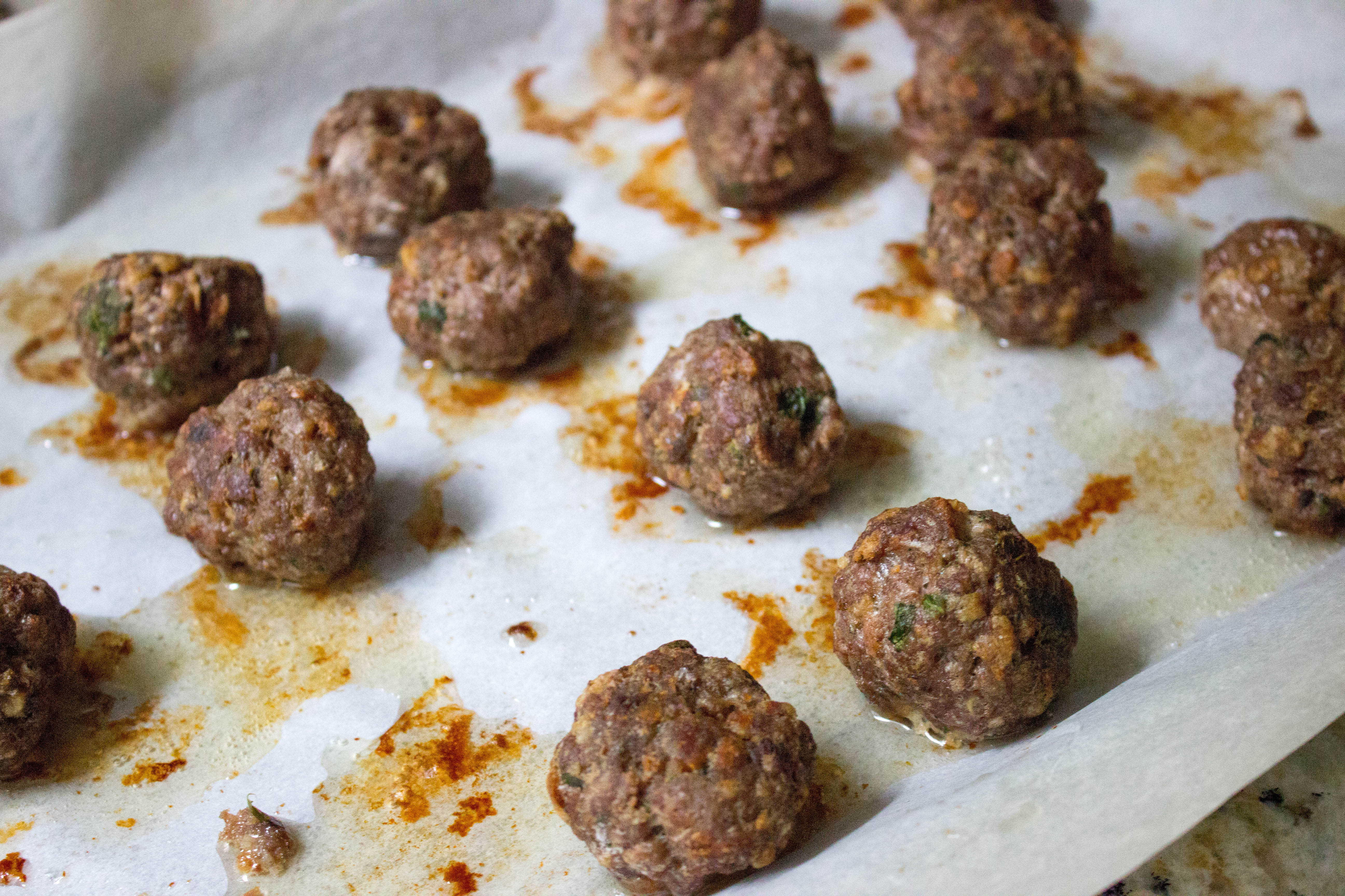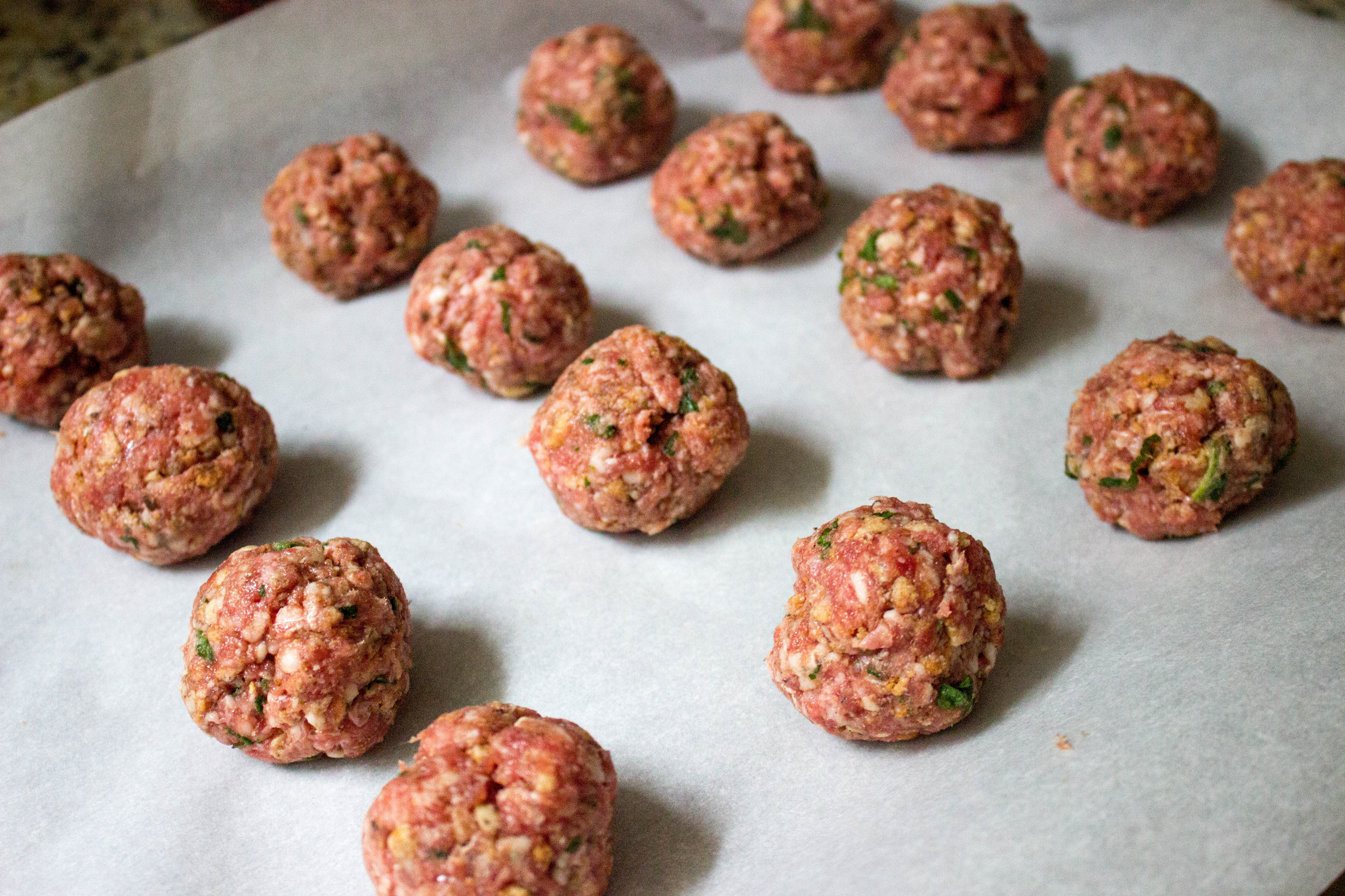 - Roll meatball mixture into 1-inch balls and place onto your baking sheet.