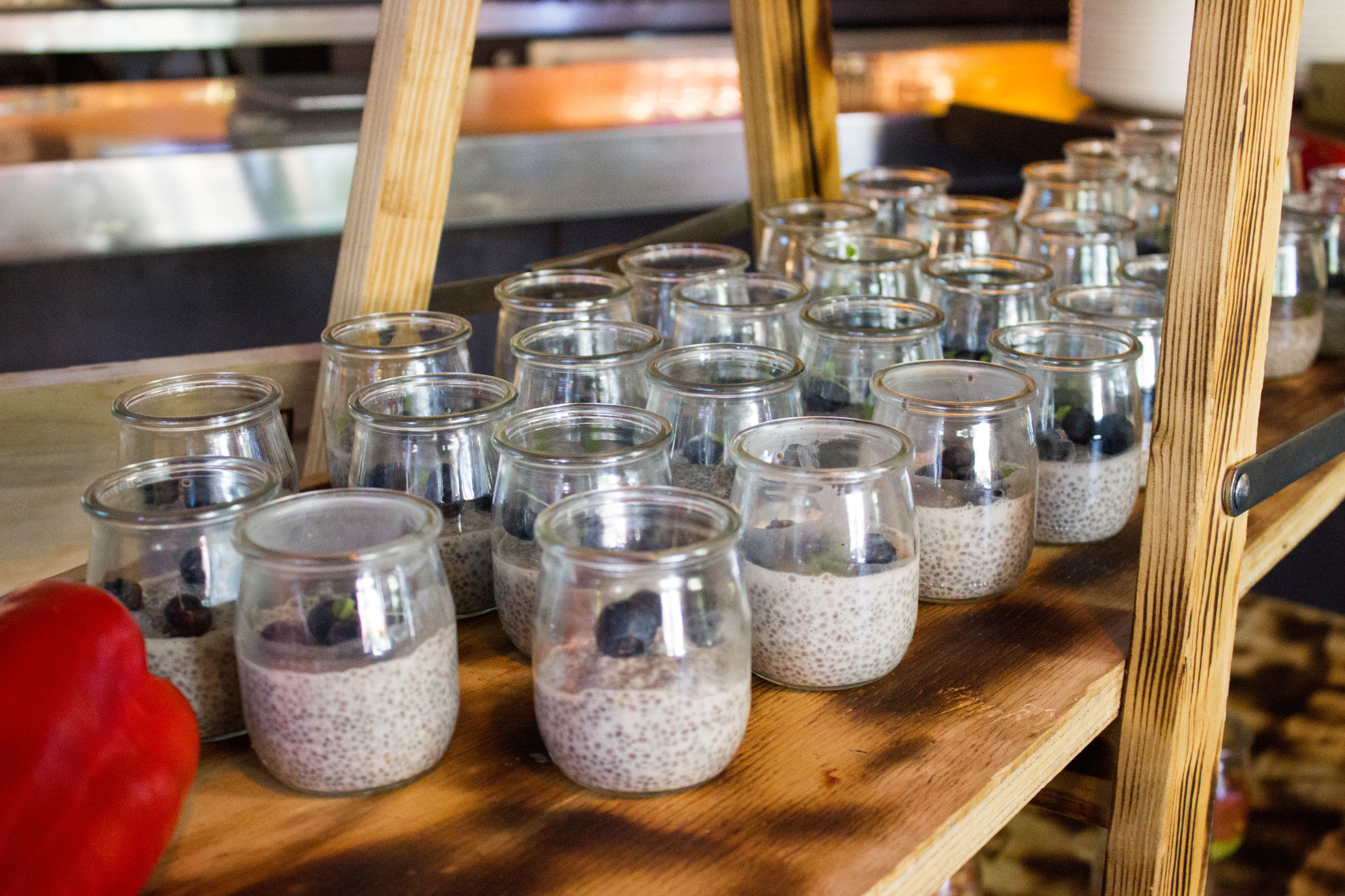 Chia Blueberry Power Parfait: aztec chia seed, lemon zest, almond coconut milk, fresh blueberries
