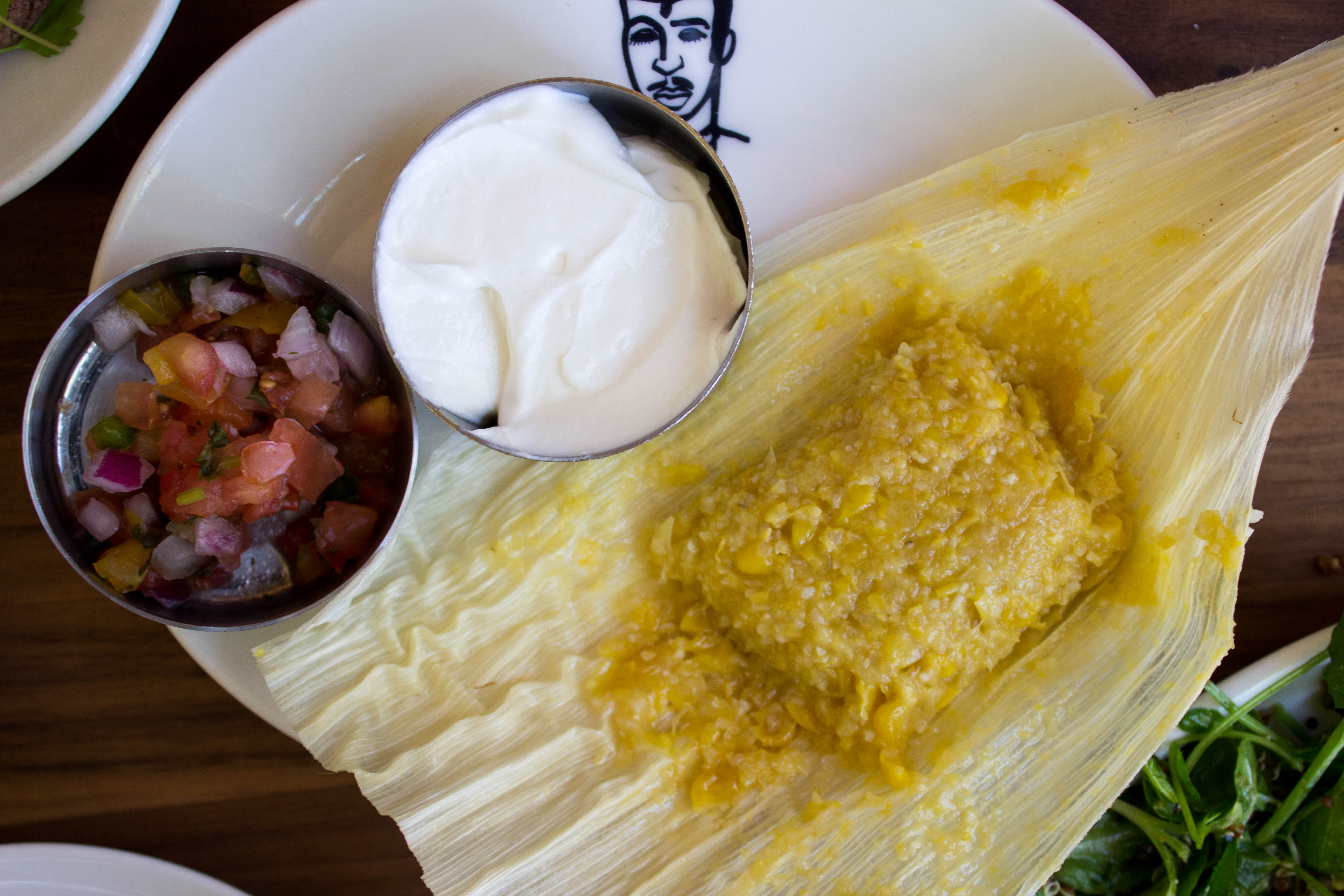 Green Corn Tamales: sweet corn, salsa fresca, sour cream
