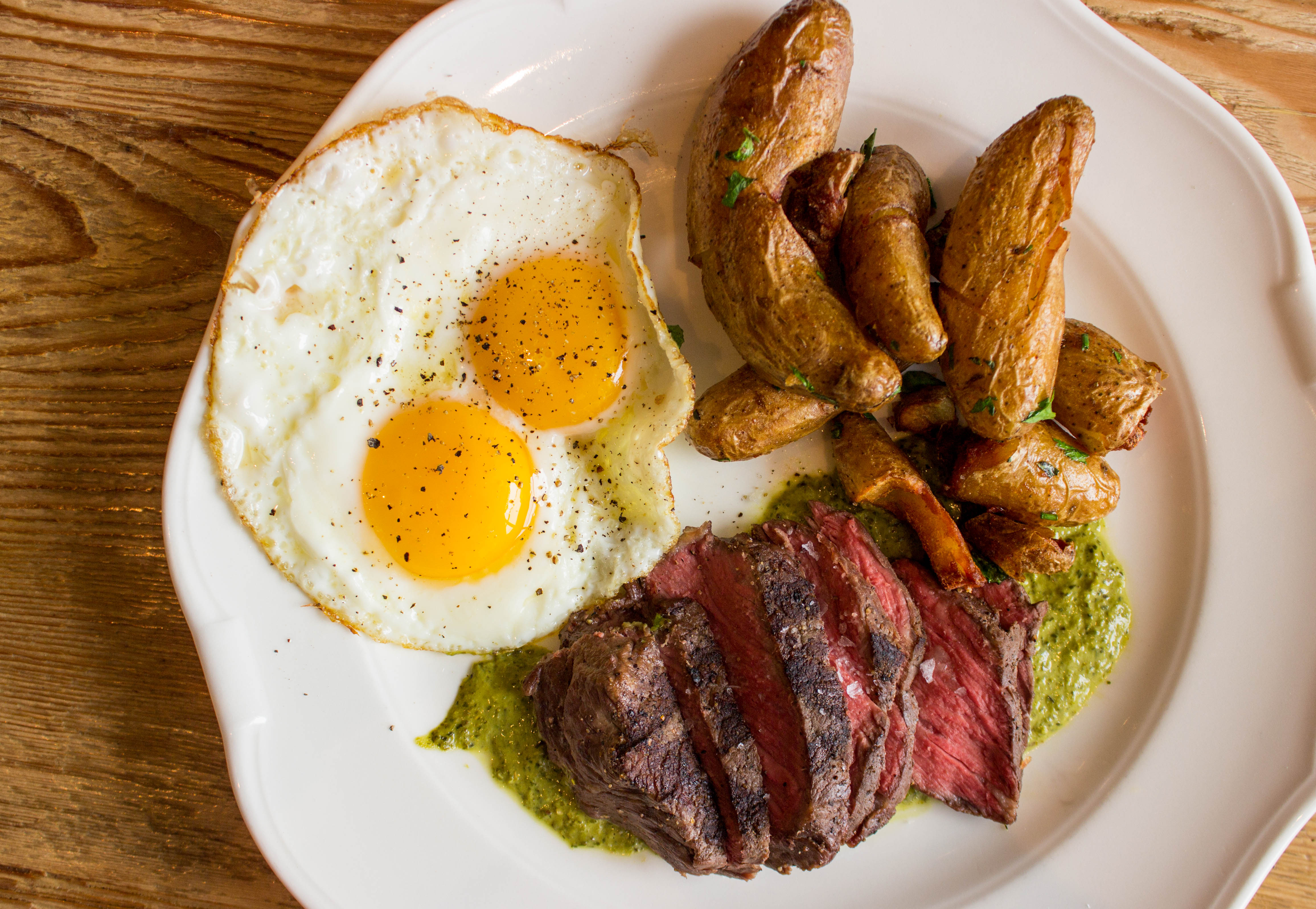 My favorite dish of the bunch was this vibrant steak & eggs. The steak was cooked to the perfect medium rare, and served on top of a schmear of fresh salsa verde. The acidity and tartness of this salsa complimented the fatty steak. Farmhouse opted for herb roasted fingerling potatoes as the potato accompaniment to this dish and I was for sure a fan.