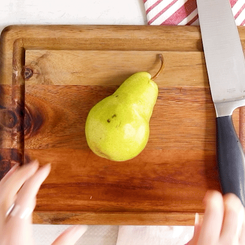 While your baguette slices are toasting, cut pears into thin slices.