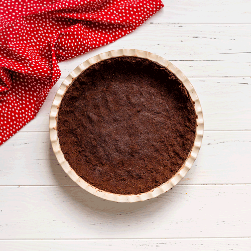 Transfer crust mixture to a pie pan and press until you form an even crust. Depending on the size of your pie pan, you might have some crust mixture leftover.