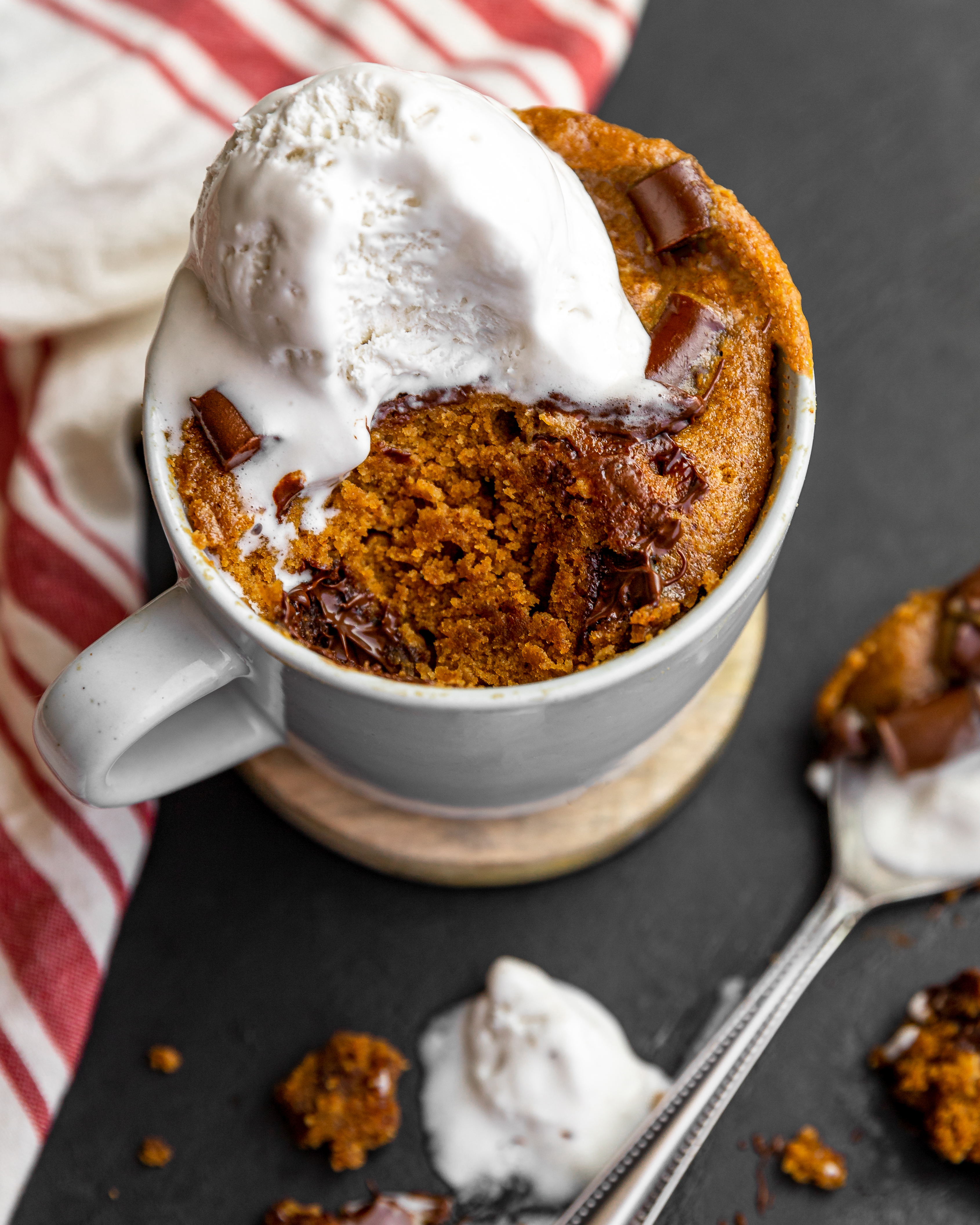 Hope you enjoy my quick dessert fix! If you make this recipe, I highly suggest using a larger and taller/wider mug. The cake rises a bunch in the microwave!
