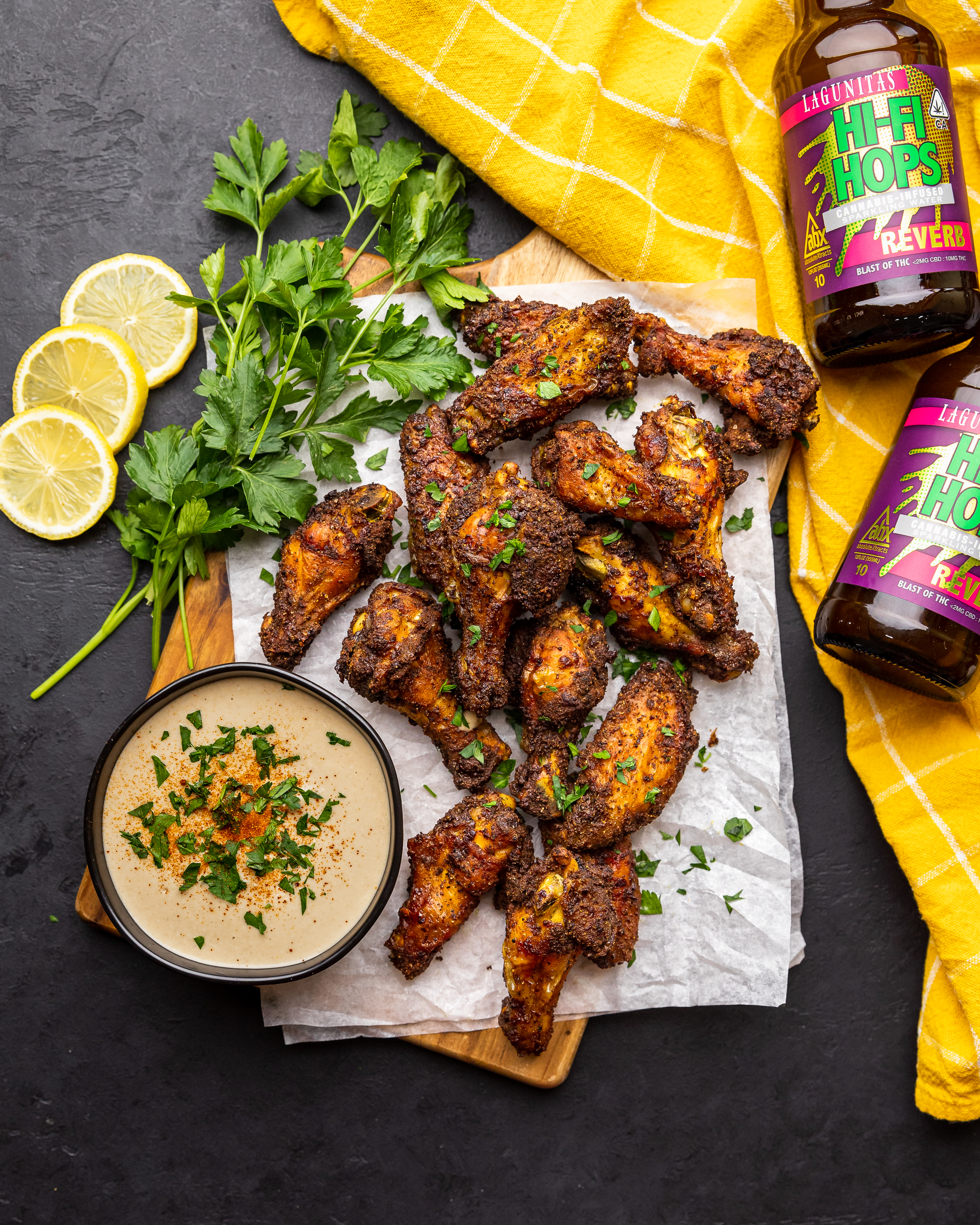 In my mind, there’s no such thing as too many chicken wing recipes. I love trying new flavors when I make wings, and these yummy shawarma spiced chicken wings were a delicious and happy experiment! A handful of spices come together for the most flavorful wings possible, which pairs deliciously with Hi-Fi Hops Reverb from ABX and Lagunitas! Each Hi-Fi Hops Reverb bottle has 10mg THC – the perfect drink to keep you chill.