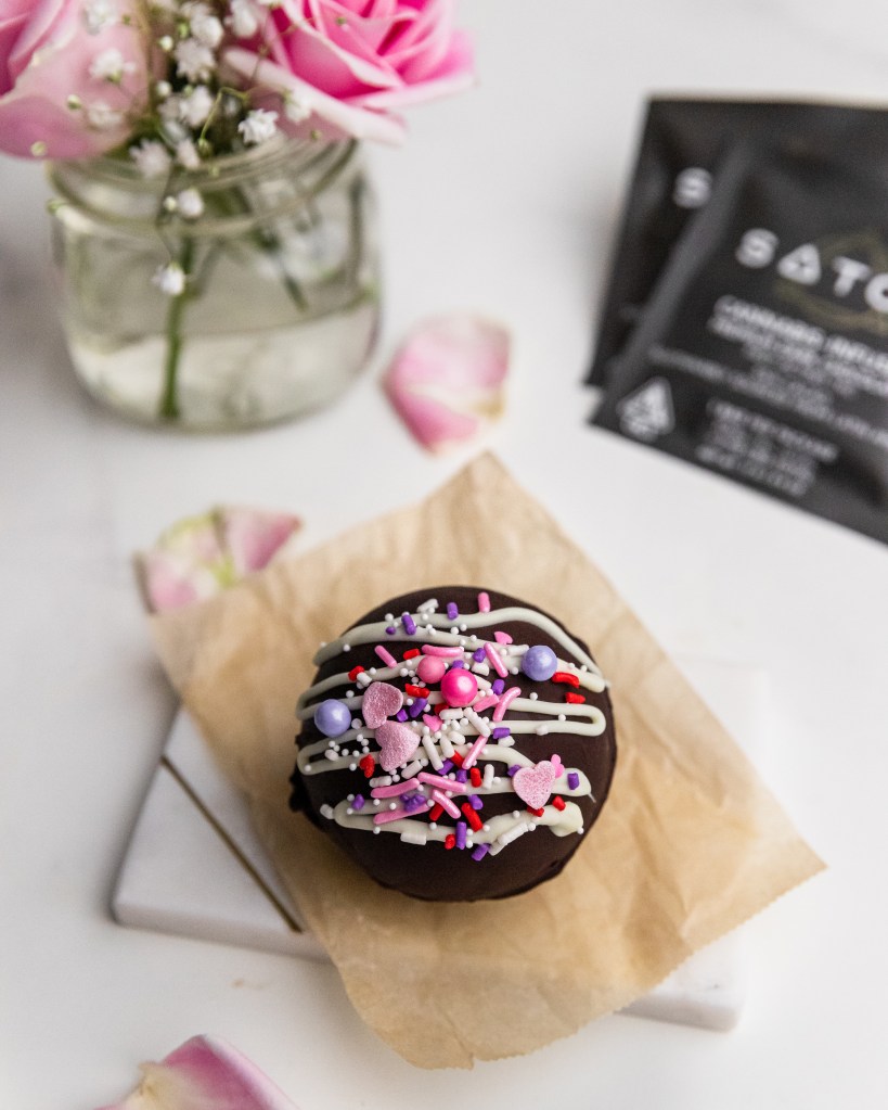 Each square of Satori Singles Dark Chocolate has 10mg THC. For this recipe, we use 2 squares, or 20mg THC to make three hot chocolate bombs. However, you can use more or less dosed chocolate depending on your preference and tolerance. Just supplement the remaining chocolate with your dark chocolate bar of choice. For this recipe, we recommend using a dark chocolate that’s at least 75% cacao, as this has an impact on the strength and stability of your hot chocolate bombs. Please don’t use chocolate chips for this recipe – since chocolate chips usually have stabilizers and other ingredients added to them, they will make our bombs bendy and weak instead of snappy and strong, like we need them!