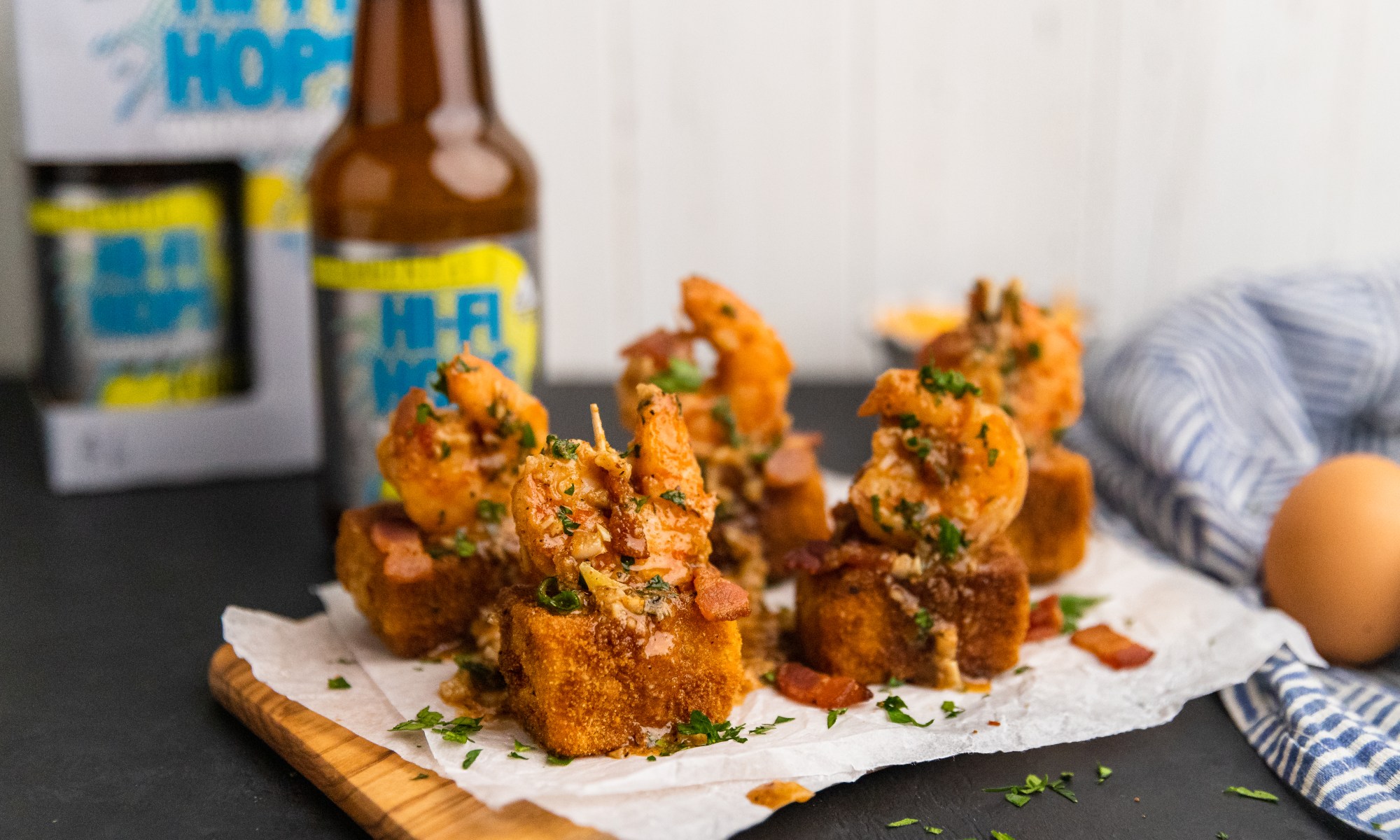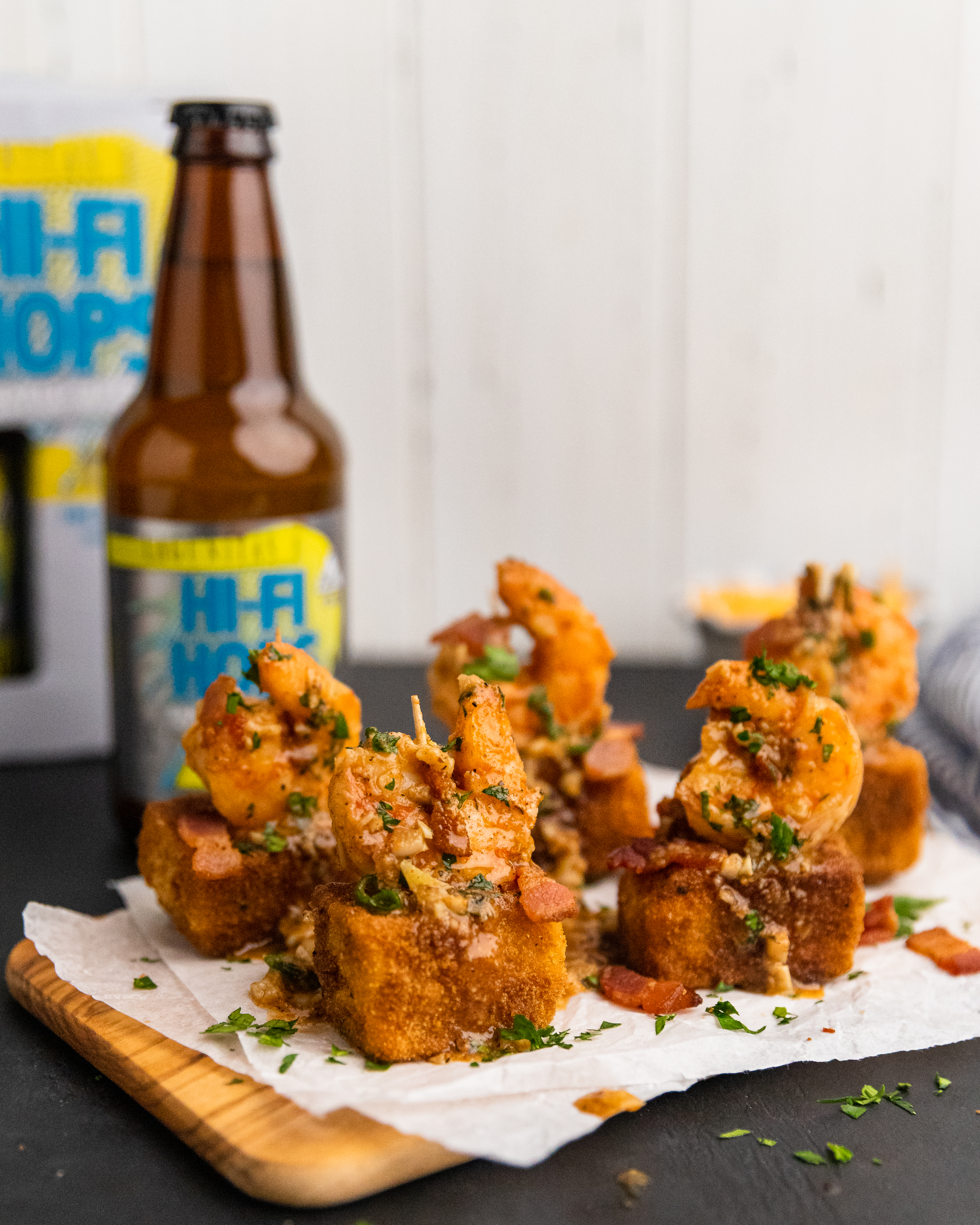 Up your snack game with these insane Shrimp & Crispy Fried Grits Bites! I took a classic comfort food dish, gave it a fun appetizer twist, and the result is bite-size heaven that pairs perfectly with an ice cold Hi-Fi Hops Tuner from Lagunitas and ABX. With 5mg THC and 5mg CBD per bottle, you can expect a delightfully balanced high that is only elevated by delicious food!