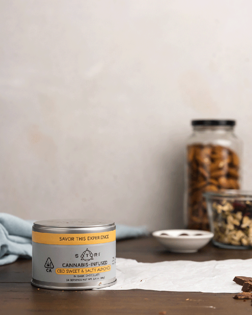 - 1 tin Satori CBD Sweet & Salty Almonds in Dark Chocolate